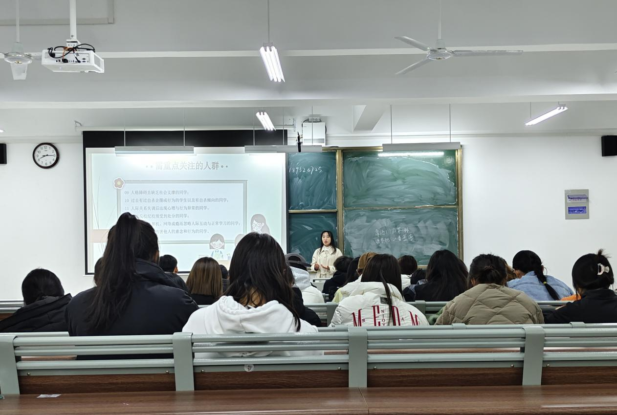 此次会议,主讲人围绕“心理健康知识概述”、“心理委员角色定位和职责”、“需要关注的群体”、“发现心理问题同学如何做”等方面展开讲述,帮助心理委员们增强责任意识、明确工作职责,提高工作水平。同时,针对当前员工常见的心理问题,主讲人通过案例分析、问题讨论等形式进行答疑解惑,并向同学们介绍有关心理咨询的专业知识。主讲人强调,员工心理健康同其学习生活密切相关,各班心理委员要坚持深入个体,精准发力,切实提高员工的心理健康服务保障水平,做同学们的心灵守护者。