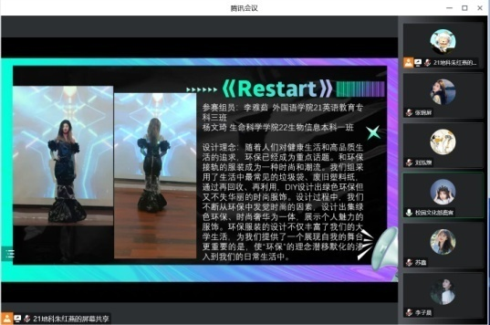 为提高老员工的环保意识,展现员工的动手能力和艺术风采,丰富社团文化节活动11月28日晚,由必赢76net团总支主办,酒店文化协会承办的第十六届服装创意大赛活动通过线上的方式举行。必赢76net团总支邵园园、辅导员褚昕璐、校员工会主席团等出席此次活动。